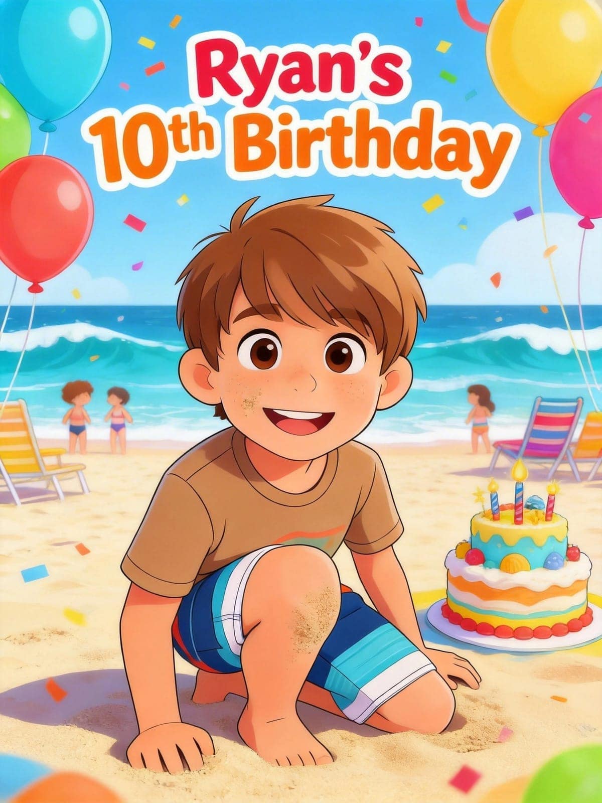 Cartoon styling reads as friendly and inclusive across ages. It pairs well with candy tables, bounce houses, and classroom parties where the vibe should stay light.